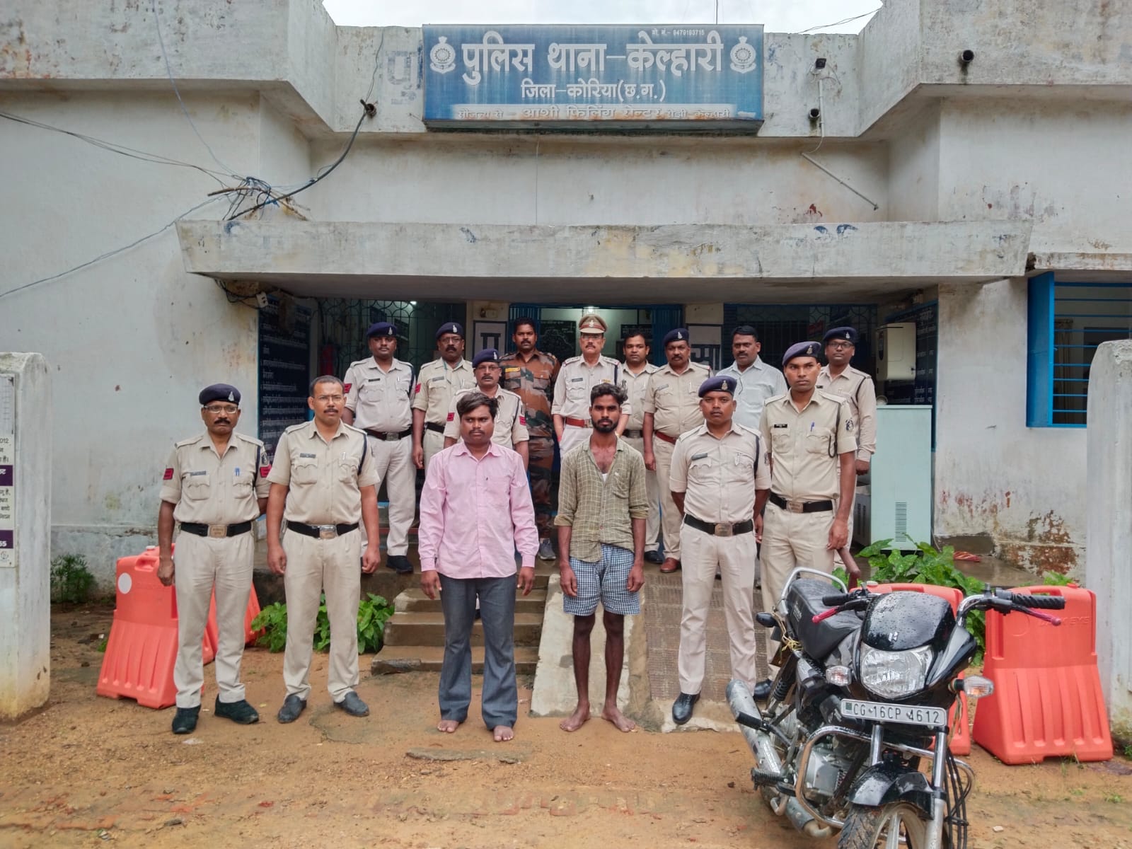 कोरिया / हीरालाल निवासी साजपहाड के बीते रात्रि में अपने घर में सो रहा था कि तभी रात करीब 2:30 बजे बकरी के चिल्लाने की आवाज सुनकर उठा तो देखा घर के दीवाल में सेध लगी है और दो नग बकरी अज्ञात चोर चोरी कर ले गये है जो हल्ला किया तो आसपास के लोग इकट्ठा हो गए जंगल में तलाश करने पर आरोपी ओम प्रकाश उर्फ बैगा पकड़ा गया शेष आरोपी फरार हो गए थे प्रार्थी द्वारा पुलिस को भी तुरंत फोन कर सूचना दिया गया तब थाना प्रभारी द्वारा टीम बनाकर अज्ञात बकरी चोरो की पता तलाश हेतु भेजा गया घटना की जानकारी पुलिस अधीक्षक कोरिया संतोष कुमार सिंह एवं नगर पुलिस अधीक्षक श्री पी पी सिंह को अवगत कराया गया तथा दिशा निर्देश प्राप्त कर पुलिस टीम द्वारा प्रार्थी एवं अन्य के साथ जंगल में तलाश किया गया। भागे हुए आरोपियों की पतासाजी की गई तो आरोपी प्रदुमन बसोर एवं सूरज प्रसाद पकड़े गए पकड़े गए आरोपियों से पूछताछ करने पर अपने दो अन्य साथियों के साथ वारदात को घटित करना बताये। प्रकरण में प्रार्थी का चोरी दो बकरी एवं सेंध मारने में उपयोग किया लोहे का छोटा साबर बरामद कर जप्त किया गया। आरोपी ओम प्रकाश उर्फ बैगा पिता लखराम बसोर उम्र 40 वर्ष, प्रदुमन पिता स्वर्गीय रमेश बसोर उम्र 24 वर्ष एवं सूरज प्रसाद पिता छोटू प्रसाद उम्र 29 वर्ष निवासी केराडोल को धारा 457 380 भा.द.वि. के तहत गिरफ्तार कर न्यायिक रिमांड पर भेजा गया। दो फरार अन्य आरोपी की पतासाजी की जा रही हैं।