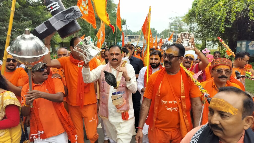 इस विशेष अवसर पर प्रदेश के स्वास्थ्य मंत्री श्याम बिहारी जायसवाल स्वयं कांवर उठाकर श्रद्धालुओं के साथ करीब दो किलोमीटर पैदल चले। शिवभक्ति में लीन मंत्री कभी सिर पर भगवान शिव की प्रतिमा उठाए नजर आए, तो कभी गदा व डमरू के साथ “हर हर महादेव” के जयघोष करते दिखे। उनकी अगुवाई में सैकड़ों कांवरिए उमंग और ऊर्जा के साथ यात्रा करते रहे।